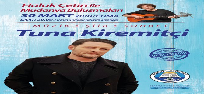 Müzisyen Tuna Kiremitçi, 30 Mart Cuma akşamı saat 20.00’de Uğur Mumcu Kültür Merkezi’nde Mudanyalılarla buluşacak. Mudanyalılar, Tuna Kiremitçi ile Haluk Çetin’in müzik ve sohbetiyle unutulmaz bir gece daha yaşayacak. Ücretsiz olarak düzenlenen kültür sanat etkinlikleri kapsamında pek çok şair, yazar, müzisyen ve aydını Mudanyalılarla bir araya getiren Mudanya Belediye Başkanı Hayri Türkyılmaz, etkinliklerin bahar ve yaz ayları boyunca süreceğini ifade etti.