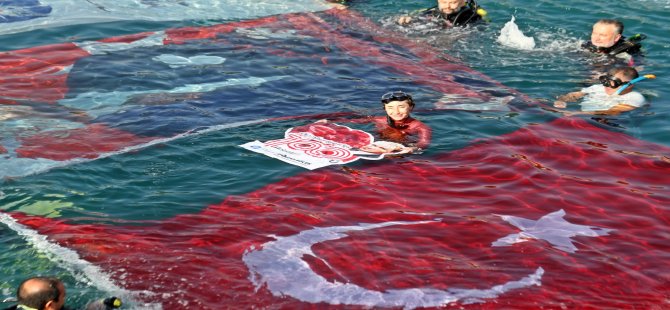 Türk bayrağını denizde dalgalandırdı