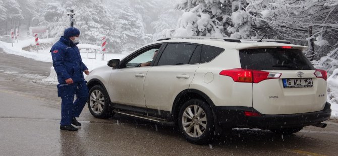 Zirveye çıkmak isteyen sürücüler tek tek durdurulup jandarma ekipleri tarafından denetlenirken, kış lastiği ve zinciri olmayan araçların geçişine izin verilmedi.