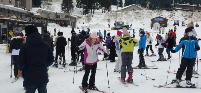 Türkiye’nin önemli kayak merkezlerinden biri olan Uludağ’a günübirlikçiler akın etti. Otellerde yer kalmayınca şehir merkezinde konaklayan tatilciler her gün zirveye inip çıkmak zorunda kalıyor.
