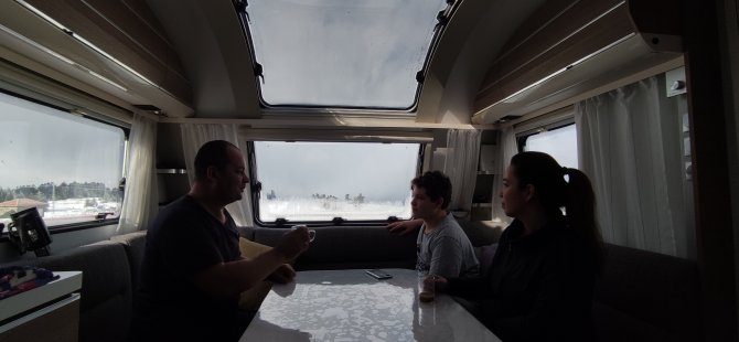 Şu an 25 karavanın bulunduğu bölgede sömestr tatilinde sayının 50'yi bulması gerekiyor. Park alanından aldıkları elektrikle karavanlarını ısıtan aileler Uludağ'ın eksi 15 dereceyi bulan soğuğunda karavanlarının içinde tişörtle kar manzarası izlemenin keyfini çıkartıyor. Burada konaklayan aileler gün içerisinde pistlerde kayak yaparak vakitlerini keyifle geçiriyor. Bursa'da işi olan bazı karavancılar her gün işine buradan gidip gelirken; bazıları ise karavanlarına hafta sonları gelip kalıyor.