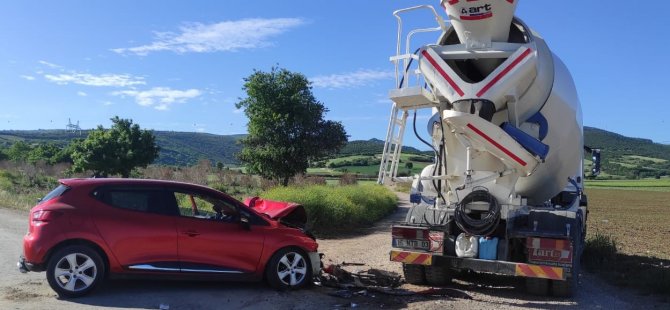 Bursa'nın Yenişehir ilçesinde otomobil ile beton mikserinin çarptığı trafik kazasında 2 kişi yaralandı.