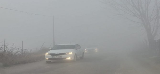 Yoğun sis altında trafikte ilerlemeye çalışan sürücüler zor anlar yaşadı.