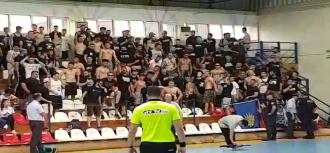 Muratpaşa Belediyespor'un Yunanistan takımı PAOK ile Türk bayrağının salona asılmasına izin verilmeyen maçta, fanatik Yunan taraftarları kadın sporculara tükürüp, sahaya yağ fırlattı.